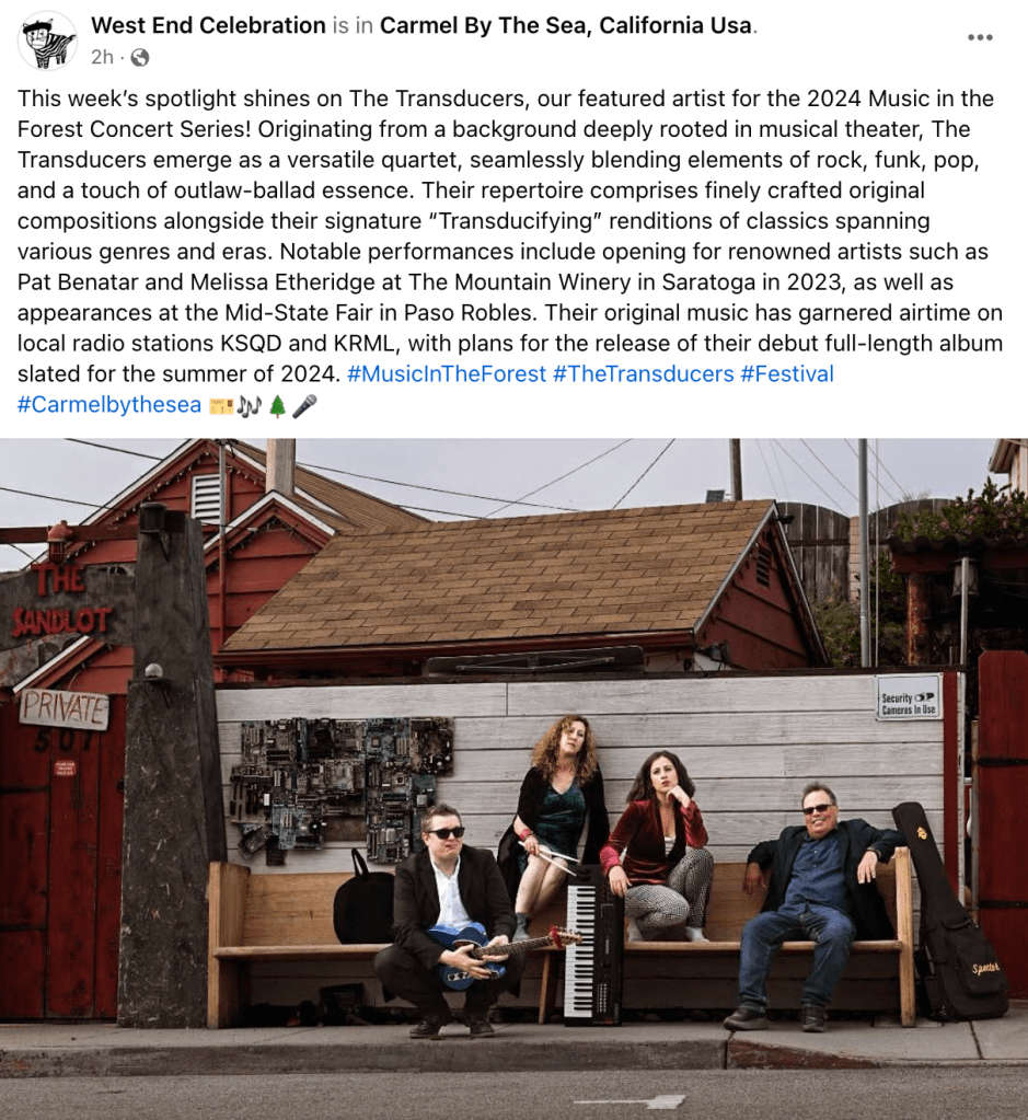 THE TRANSDUCERS @ California Seltzer Co. at Lover’s Point!